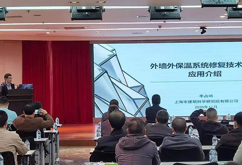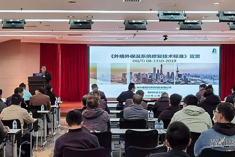 上海建科院材料所總工程師陳寧代表標(biāo)準(zhǔn)編制組,對(duì)《標(biāo)準(zhǔn)》的編制背景、編制思路、標(biāo)準(zhǔn)內(nèi)容及工程應(yīng)用等進(jìn)行了介紹和解讀。針對(duì)本市外墻外保溫系統(tǒng)特點(diǎn),標(biāo)準(zhǔn)編制過(guò)程確立了四個(gè)原則:一是兼顧安全與節(jié)能;二是建立系統(tǒng)與各層材料相結(jié)合的檢測(cè)評(píng)估技術(shù);三是基于評(píng)估結(jié)果制定有針對(duì)性的修復(fù)技術(shù)方案;四是確保修復(fù)技術(shù)方案的高效、環(huán)保、耐久和少擾民。會(huì)上對(duì)標(biāo)準(zhǔn)的總則、術(shù)語(yǔ)、基本規(guī)定、檢測(cè)與評(píng)估、系統(tǒng)及材料、設(shè)計(jì)、施工和驗(yàn)收等八個(gè)章節(jié)及附錄,進(jìn)行了條文講解,重點(diǎn)介紹了技術(shù)指標(biāo)的試驗(yàn)和工程驗(yàn)證、外墻外保溫系統(tǒng)質(zhì)量技術(shù)狀況評(píng)估方法、各種修復(fù)技術(shù)特點(diǎn)及其適用范圍,以及依據(jù)評(píng)估結(jié)果確定修復(fù)技術(shù)的有關(guān)規(guī)定。