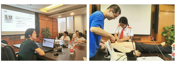 在《建筑災(zāi)害下的自救與互救》專題講座中,建科院結(jié)構(gòu)所研創(chuàng)中心博士們通過生動演繹和講解,讓同學們了解了火災(zāi)、地震、恐怖襲擊、踩踏、風災(zāi)、水災(zāi)等災(zāi)害下自救與互救辦法,總結(jié)了逃生口訣。同學們在的指導(dǎo)下體驗了心肺復(fù)蘇術(shù)實操,加深了動作記憶。