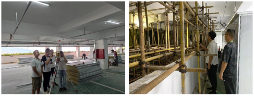上海建科院結(jié)構(gòu)團隊利用周末極速響應(yīng)、迅速部署,根據(jù)主辦方需求制定了檢測和監(jiān)測方案,抽調(diào)黨員技術(shù)骨干組成項目組于次日奔赴廬山。經(jīng)過檢測和通宵的計算,2日內(nèi)提交了安全性鑒定初步結(jié)論,確保電影周新聞發(fā)布會如期進(jìn)行?;顒悠陂g,項目組在結(jié)構(gòu)關(guān)鍵位置布置了50多個傳感器,對舞臺搭建過程中主體結(jié)構(gòu)的安全狀況進(jìn)行實時監(jiān)測。