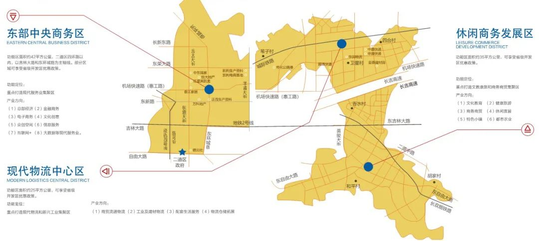 二道區(qū)是長春市東部中心城區(qū),也是一帶一路和哈長城市群的重要節(jié)點(diǎn)。全區(qū)面積102平方公里,包括沿伊通河中央商務(wù)區(qū)、現(xiàn)代物流中心區(qū)、休閑商務(wù)發(fā)展區(qū)等功能區(qū)域,面臨新一輪城市更新及高質(zhì)量發(fā)展機(jī)遇。