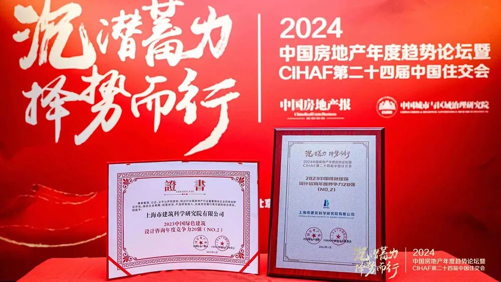 近日,由中國房地產(chǎn)報(bào)、中國住交會(huì)組委會(huì)、中國城市與區(qū)域治理研究院主辦的“2024中國房地產(chǎn)年度趨勢(shì)論壇——暨CIHAF第二十四屆中國住交會(huì)”在北京隆重召開。上海市建筑科學(xué)研究院有限公司獲得華東第一,全國第二的榮譽(yù),并被評(píng)為2023中國綠色建筑設(shè)計(jì)咨詢年度競(jìng)爭(zhēng)力領(lǐng)先企業(yè)。至此,上海建科院連續(xù)十年入圍中國綠色建筑設(shè)計(jì)咨詢競(jìng)爭(zhēng)力十強(qiáng)!連續(xù)五年蟬聯(lián)華東第一!