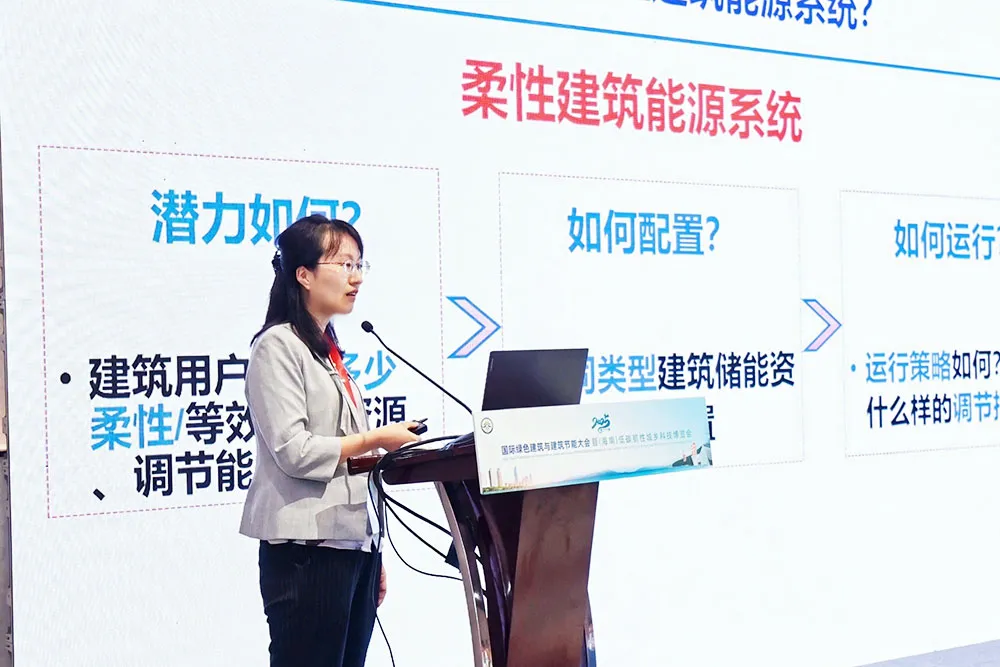 清華大學(xué)教授劉曉華以《面向零碳目標(biāo)的建筑柔性用能探索》為題進(jìn)行報(bào)告,介紹了能源系統(tǒng)的結(jié)構(gòu)變化以及對(duì)建筑側(cè)柔性用能的需求,建筑側(cè)各類等效儲(chǔ)能資源的特征,反映供需關(guān)系的電力動(dòng)態(tài)碳排放責(zé)任因子,以及在此目標(biāo)下建筑柔性用能降低碳排放的工程示范案例。