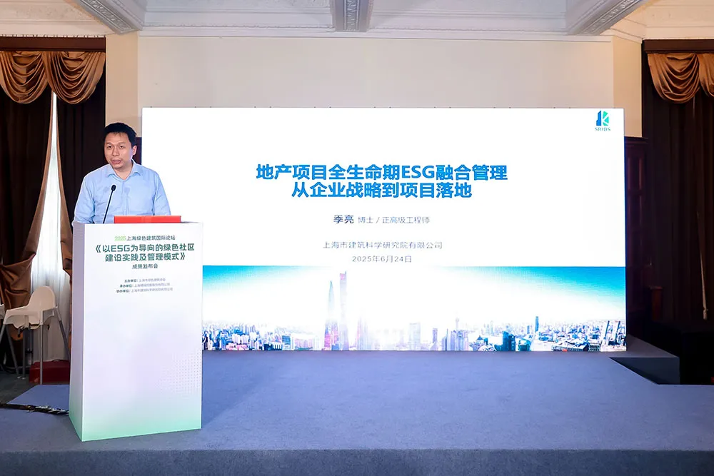 6月24日,2025上海綠色建筑國際論壇在錦江飯店小禮堂隆重舉行。作為論壇協(xié)辦單位,上海建科咨詢集團股份有限公司攜地產(chǎn)項目全生命期ESG融合管理成果、既有建筑綠色低碳更新改造評定獲獎項目、綠色生態(tài)城區(qū)項目亮相論壇活動。上海建科咨詢集團黨委副書記、總裁夏冰出席會議。集團市場發(fā)展部總經(jīng)理葛曹燕,上海市建筑科學研究院有限公司黨委書記、執(zhí)行董事楊建榮,副總經(jīng)理張穎參加本次活動。