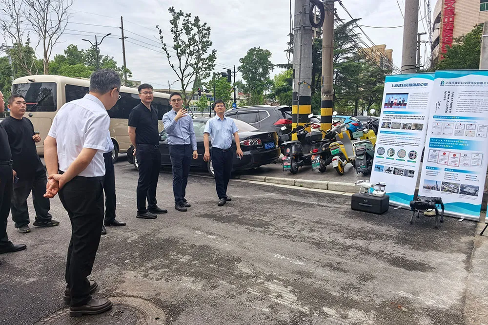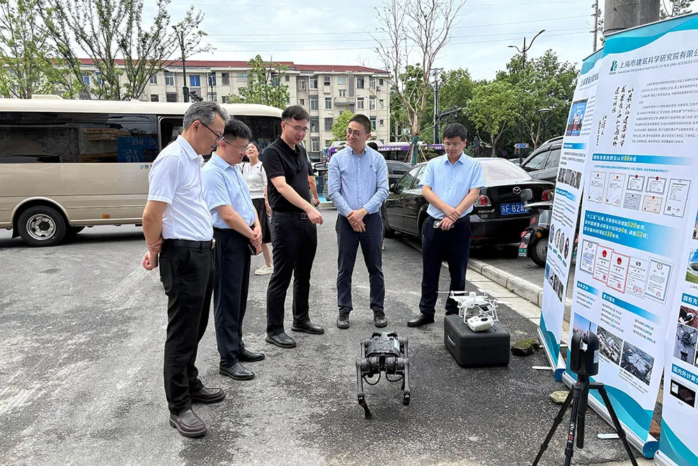 周曉杰一行實(shí)地考察了房屋體檢作業(yè)流程,重點(diǎn)了解圖紙測繪、居民入戶等環(huán)節(jié)中的重難點(diǎn)問題,并聽取南通市老舊小區(qū)房屋安全隱患現(xiàn)狀的匯報(bào)。上海建科院結(jié)構(gòu)所區(qū)域拓展中心主任陳馳向調(diào)研組系統(tǒng)介紹了基于南通市房屋體檢導(dǎo)則、融合上海經(jīng)驗(yàn)形成的“無人機(jī)巡查+人工詳查+專業(yè)判斷”工作模式?,F(xiàn)場通過無人機(jī)、機(jī)器狗等數(shù)字化設(shè)備演示,直觀呈現(xiàn)了智能化檢測技術(shù)在房屋結(jié)構(gòu)評估、隱患識別中的高效應(yīng)用。調(diào)研組圍繞房屋體檢制度建設(shè)、管理機(jī)制、技術(shù)規(guī)范及成本控制等議題展開深入交流。