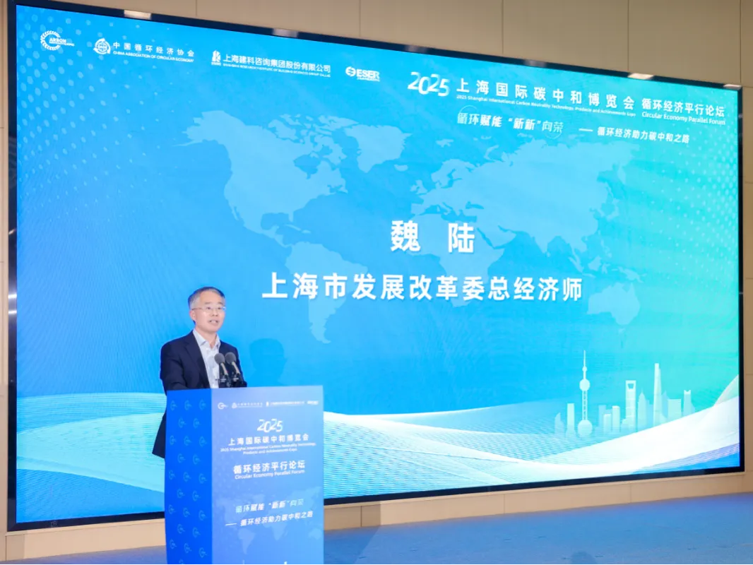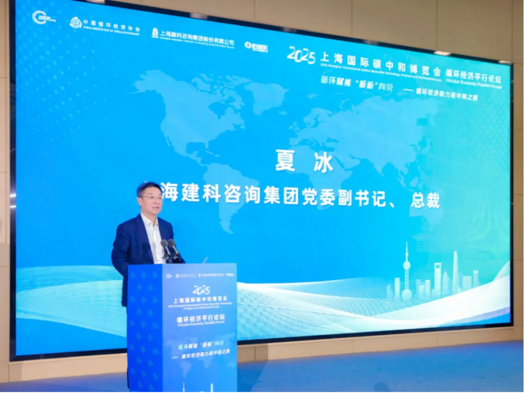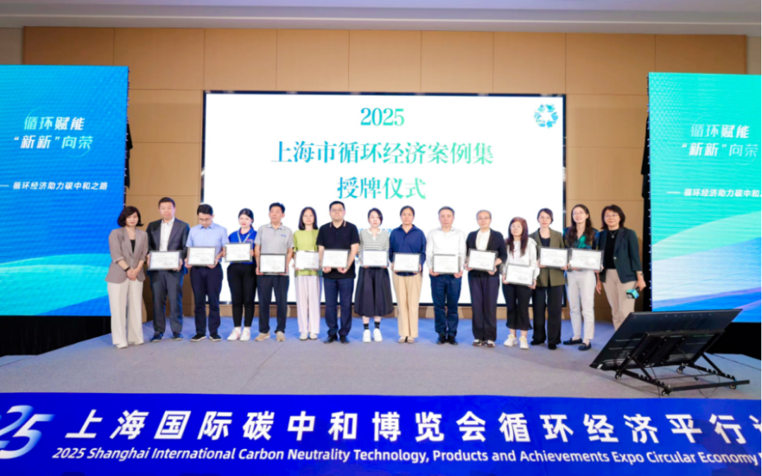 展會首日,集團主辦、市節(jié)能減排中心承辦的“循環(huán)賦能 ‘新新’向榮——循環(huán)經(jīng)濟助力碳中和之路”2025循環(huán)經(jīng)濟平行論壇成功舉辦。市發(fā)改委總經(jīng)濟師魏陸為活動致辭,集團黨委副書記、總裁夏冰代表主辦方致辭,副總裁孫蔚為《上海市循環(huán)經(jīng)濟典型案例集》的入選案例企業(yè)授牌。