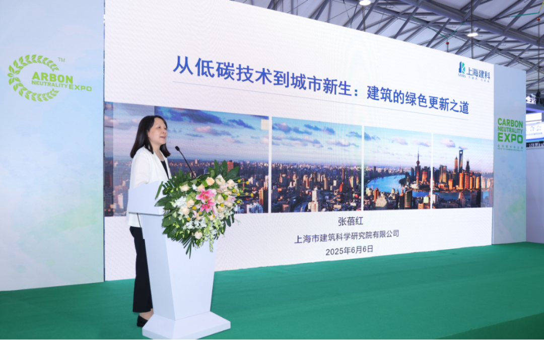 次日,碳博會城市更新綠色引力論壇舉行,上海建科院張蓓紅博士作主題演講,分享建筑領(lǐng)域從低碳技術(shù)到城市新生的更新發(fā)展之道。